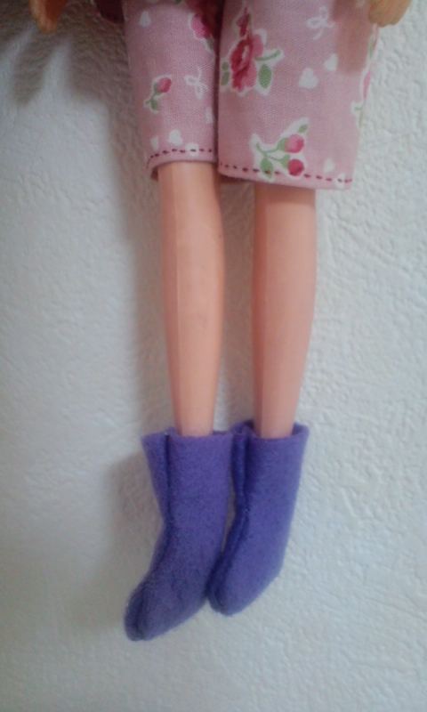 18cm×18cmのフェルトでワンピースとキャプリーヌを作った残りで、サイト「SakuraCity」様の作り方を参考にフェルトブーツを作ってみた。 |