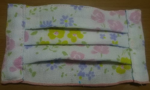 3月末~4月に娘のマスクを縫ったら中途半端に余った布で、強引に作ってみた。 |