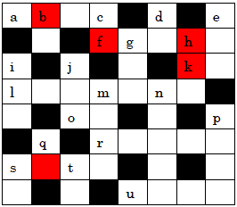 黒以外のマスを全て埋め、赤いマスの文字を並べ替えて言葉を作ってください。