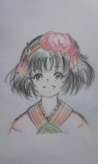 前に一度ピーチ・マキも描いたが、単なる“角が生えたオカッパ少女”になってしまい、作品名付きでなければマキと認識できない代物だった……金魚草大使の衣装で描けばマキに見えるかなぁ。